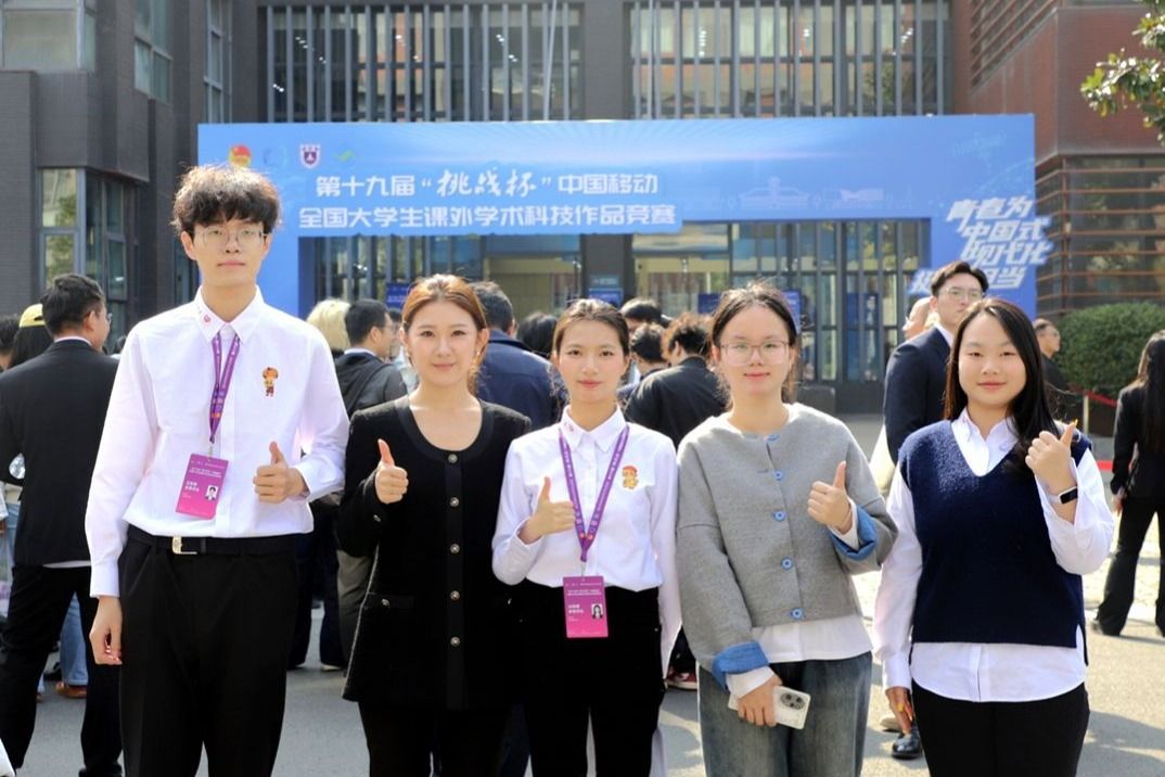 在团队背后,还有一位默默付出的老师——岳蓓。她全程陪伴学生比赛,在学生们紧张备赛的日子里,她就像一位贴心的大姐姐,时刻关注着大家的状态。她会在学生们疲惫时,送上一杯热茶,鼓励大家坚持下去;会在学生们遇到困难时,耐心地倾听他们的烦恼,给予温暖的安慰和实用的建议。在比赛前夕,岳老师还特意为团队成员们加油打气,用坚定的话语和鼓励的眼神,让每一个人都充满了信心,如同一束光,照亮了学生们前行的道路。