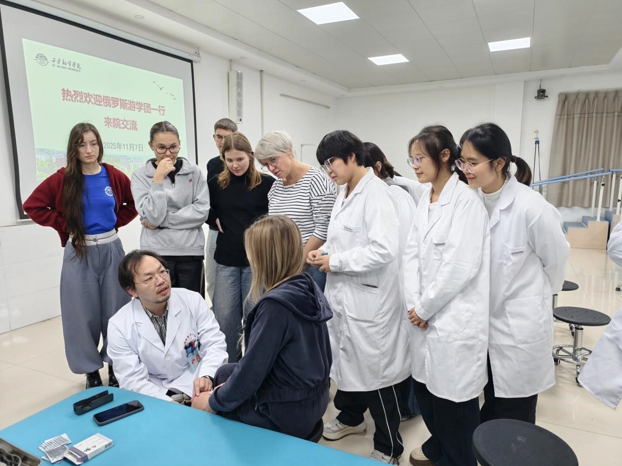 在整个体验过程中,学生代表充分发挥语言与专业优势,全程用流利的英语为俄罗斯友人提供一对一翻译与协助,耐心解答他们关于中医原理、文化背景乃至个人健康的各种疑问。双方青年从医学知识聊到校园生活,再从传统文化谈到现代发展,欢声笑语与友好探讨交织,不仅传递了知识,更播种了友谊。一位俄罗斯学生兴奋地表示:“这太不可思议了!中医是一种充满智慧的哲学,而不仅仅是一门技术。这次体验彻底改变了我对医学的认知。”
