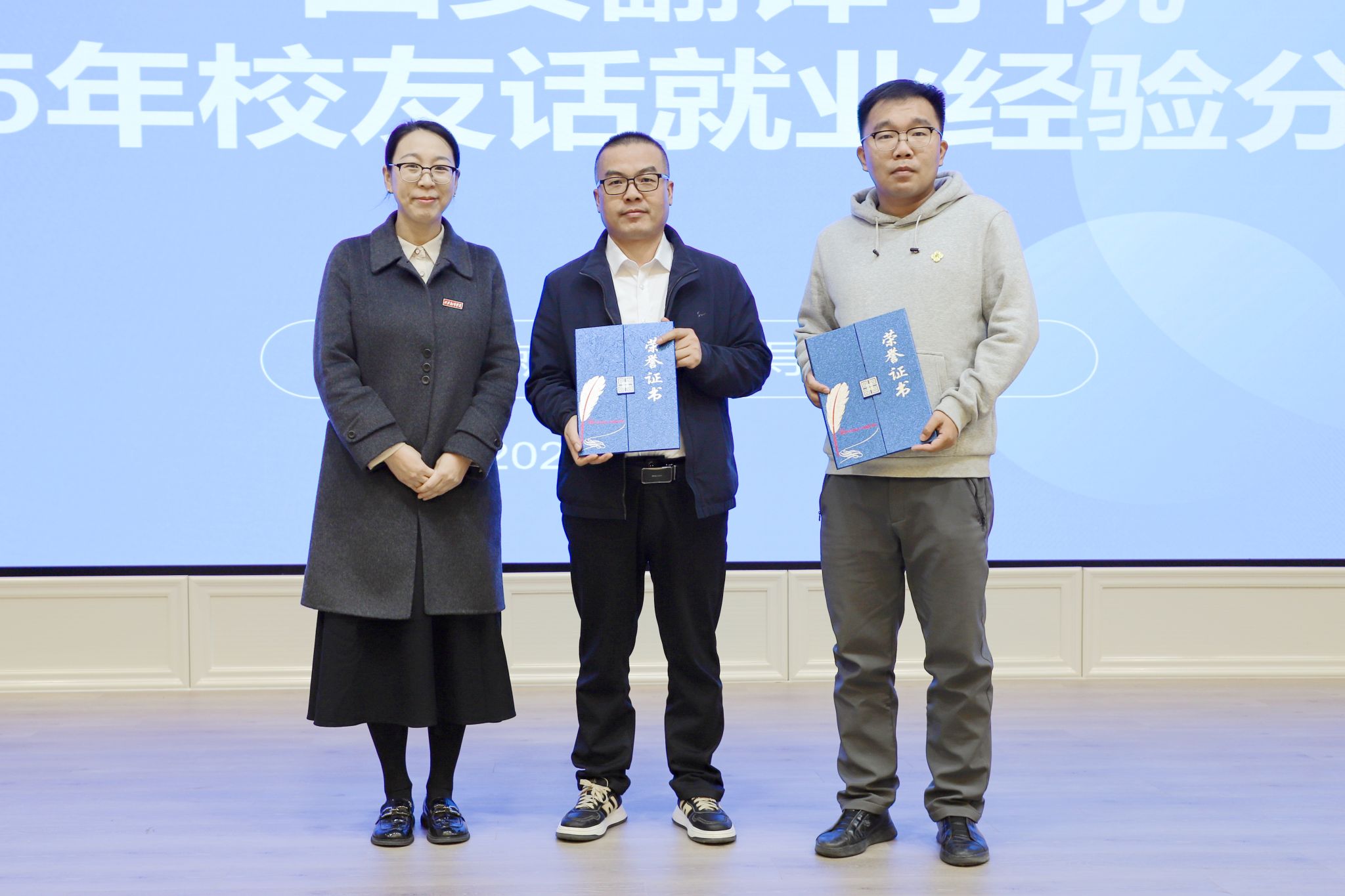 大学生就业创业指导服务中心为两位校友颁发就业指导教师证书