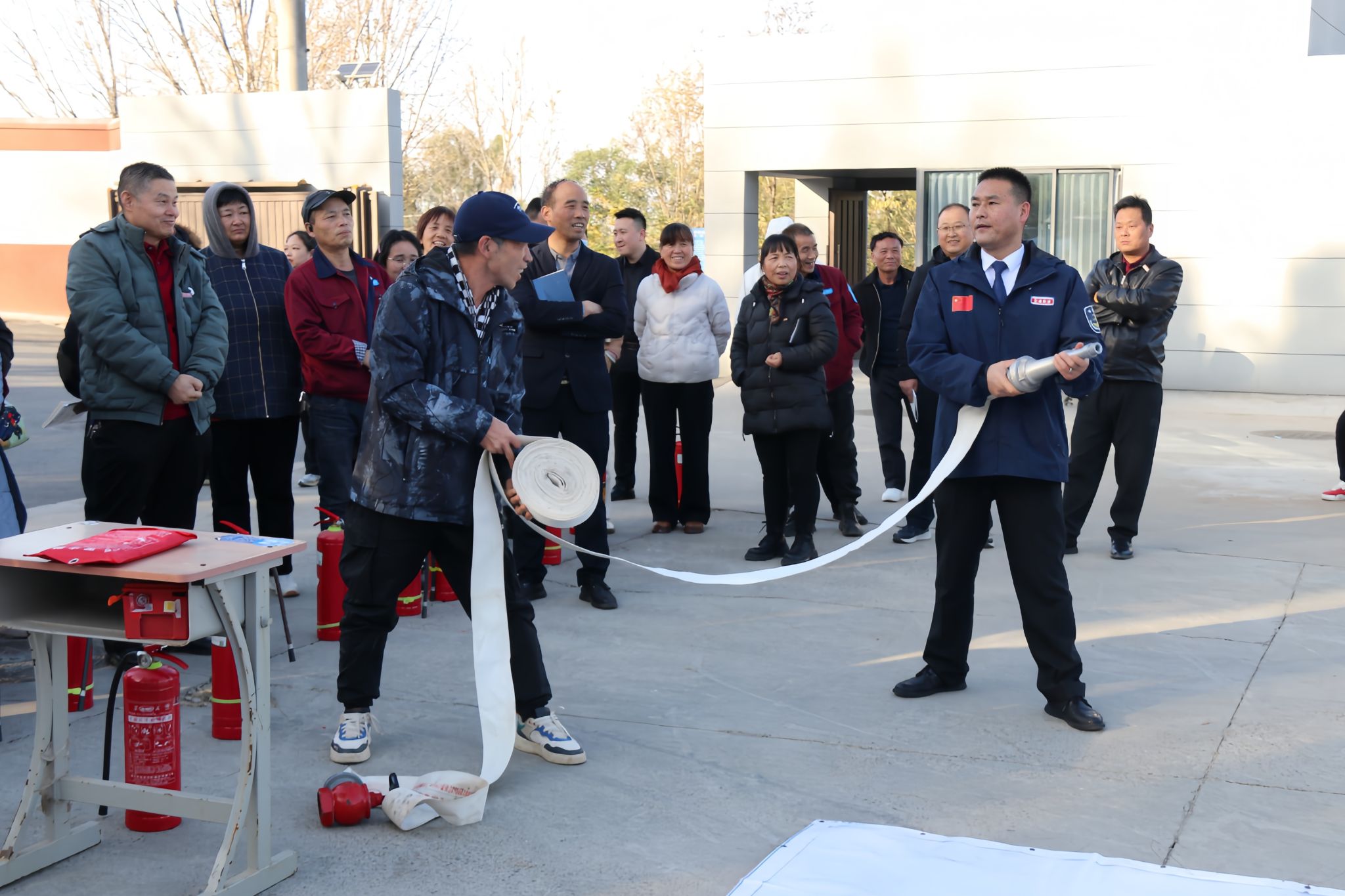 专题培训后,在北墙场地对参训人员进行实操演练,房龙涛现场讲解并示范灭火器、灭火毯、消火栓、消防自救呼吸器操作要求和使用方法,大家熟练掌握灭火器“提-拔-握-压”四步操作法,在模拟油盆火场景中实战初期火灾扑救,从而达到了“突发火灾时,消防器材人人都敢用、人人都能用,快速扑灭初期火灾”的效果。