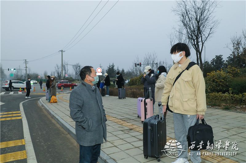 经过艰苦卓绝的斗争,西安此次疫情防控已取得阶段性成果。1月21日,西安翻译学院根据陕西省教育系统疫情防控工作部署会精神及陕西省应对新型冠状病毒感染肺炎疫情工作领导小组办公室相关文件精神,按照“科学评估、学生自愿、一人一策、全程追踪”的原则,精心组织学生分批错峰离校返乡。离校前,理事长丁晶、校长崔智林、党委书记李虎成等校领导亲自到乘车点为同学们送行。