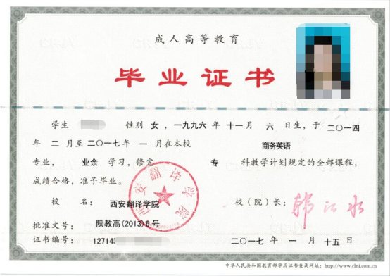 正式录取的学生,在校期间学习成绩合格,均可获得我校颁发的国家承认的成人高等教育学历毕业证书;符合西安翻译学院学位授予条件者,可授予学士学位。