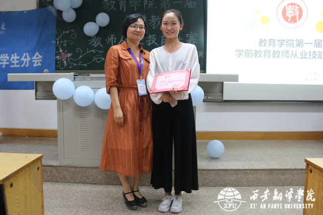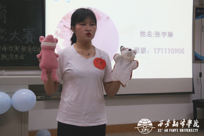 比赛分为模拟授课、故事讲述、才艺展示三部分。二号选手王彩妮展示手语操《国家》,她用嘹亮激昂的歌声结合规范得体的肢体动作,使表演更加生动感人,举手投足间流露出她对祖国母亲的无限敬畏与热爱,彰显出广大青年对国家富强、民族复兴的一腔爱国之情。四号选手张蓉声情并茂的讲述故事《耳朵上的绿星星》,温柔婉转的语言塑造出鲜明的人物形象,富有感染力的故事剧情吸引着现场每一位观众。十一号选手武小艺用轻盈曼妙的舞姿搭配制作精美的道具,带来古色古香、韵律柔美的古典舞《茉莉花》,她凭借扎实的舞蹈功底与沉稳自如的舞台表现,诠释出西译学子朝气蓬勃、积极进取的良好青春风貌,获得在场师生的阵阵掌声,最终摘得比赛桂冠。