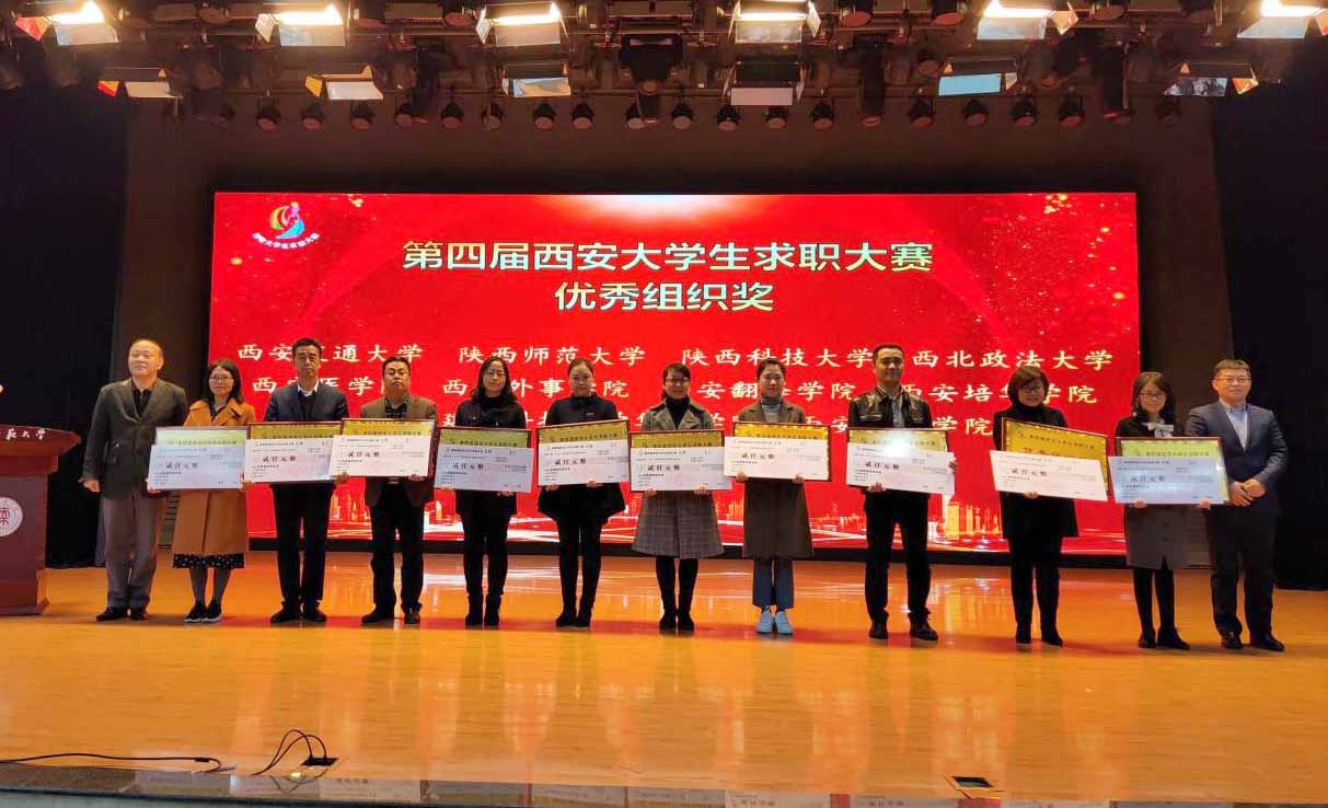11月19日,第四届西安大学生求职大赛决赛在陕西师范大学举行,西安市人力资源和社会保障局副局长杨庆、教育厅学生处处长唐澍出席颁奖仪式。我校因大赛组织工作得力,荣获优秀组织奖。