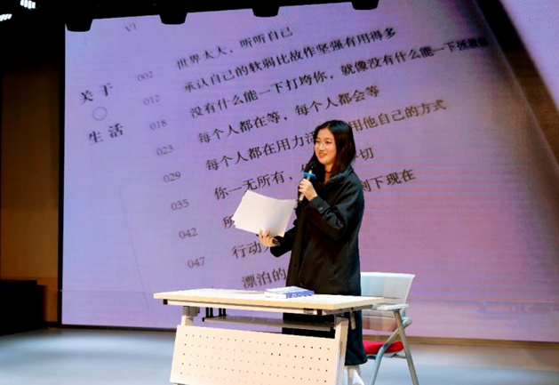 最后,大一同学以一首《小幸运》作为本次活动的结尾。正如歌词中写道“与你相遇,好幸运”,本次读书分享会不仅是不同年级同学的一场“相遇”,更是每位读者和作者思想的邂逅。通过分享交流,同学们不仅收获了知识,更激发了大家的阅读兴趣。相信在英文学院领导的大力支持和团队教师的齐心协力之下,会有越来越多的同学爱上阅读、爱上分享,度过一段充实的大学生活!