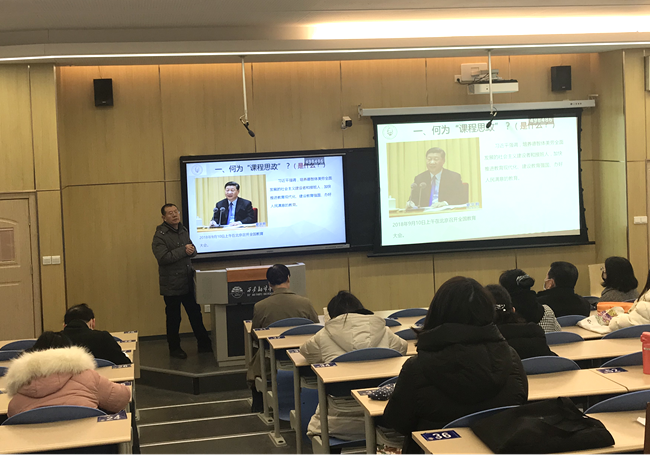 杨教授从习近平总书记主持的各次关于课程思政的会议讲起,结合近二十年来我国的社会现状尤其是高校学生思想现状,详细地阐述了何为“课程思政”、为何“课程思政”,让各位教师更加深刻地认识到“课程思政”的必要性和紧迫性。杨教授的讲座如及时雨一般,从理论和实践层面为促进“课程思政”的实施提出了具体可行的建议和方法,并分门别类的为各学科指出课程思政元素挖掘点,对广大教师更好地实施“课程思政”尤为实用。杨教授还提醒大家在课程思政建设中应注意的七个问题,以及如何防止专业课变成思政课。