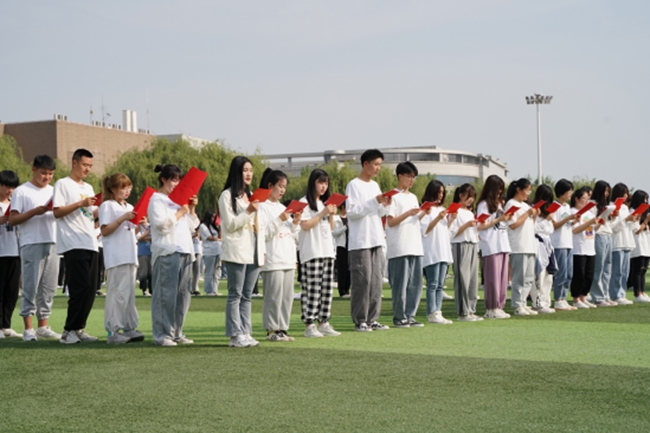 为庆祝中国共产党成立100周年,深入开展党史学习教育,5月12日清晨,由校团委主办、艺术学院团总支承办的千人红色经典诵读活动在东区操场顺利开展。校团委书记康劭洋,艺术学院团总支书记任校莉、团总支副书记张海以及艺术学院部分师生参加了本次活动。