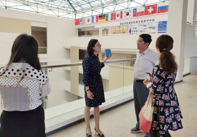 座谈会之后,在刘俊霞的带领下,赵德利一行赴商学院教学楼进行了参观,先后参观了智慧教室、两个省级虚拟仿真实验室、辅导员工作室等。商学院财务会计系教师还向来宾们进行现场实验操作演示。来宾们对我校的教学、实验设施等赞赏有加,表示此行受益匪浅,以后还会来我校学习交流。