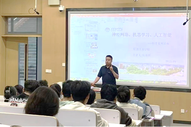 9月20日下午,人工智能翻译陕西省高校工程研究中心举办了题为“何为神经网络,何为机器学习,何为人工智能”的科普讲座。讲座由人工智能翻译陕西省高校工程研究中心主办,信息工程学院承办。人工智能翻译陕西省高校工程研究中心负责人王振辉,信息工程学院人工智能专业负责人熊伟及电子信息系全体教师及学生代表参加。信息工程学院人工智能课程教师包艳艳担任主讲,电子信息系主任梁计锋主持。