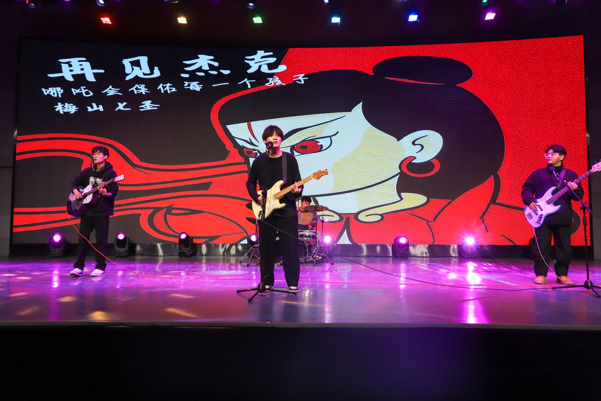 本次晚会在热情澎湃的乐队演奏《再见杰克》中拉开帷幕。情景短剧《红色信使》讲述了中国共产党员黄励不幸被捕,在看守所中不向国民党反动派妥协,忠于共产党,最后壮烈牺牲的故事,表演者们台词流利、配合默契,表达出表演者对中国共产党员的崇高敬意。朗诵《信念·永恒》,朗诵者们抑扬顿挫、铿锵有力的声调,歌颂了中国共产党人的信仰与忠诚,字里行间表达出对美好生活的期许与赞扬。乐队演奏的《不再犹豫》充满澎湃活力,演奏者高超的奏唱技巧,浑厚的嗓音将现场氛围推向高潮。国学研习会带来的走秀《盛唐夜宴》,表演者们自信大方、台风稳健,轻盈的步伐搭配华丽的服装,带给观众一场视觉盛宴。
