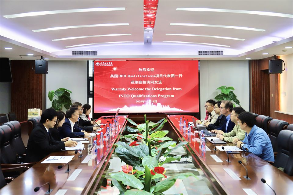 为推进高水平教育对外开放,探索教育国际合作交流新路径,10月14日,英国INTO Qualifications项目跨国教育项目总监Dr Richard Samuels受邀带领代表团到访我校,副校长郭炜接待来宾。