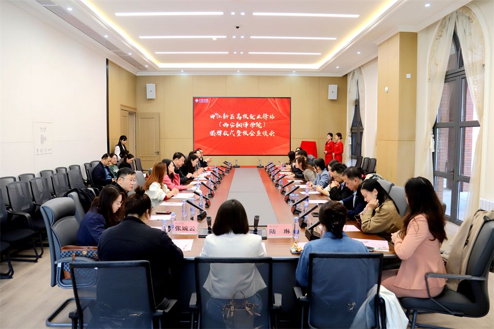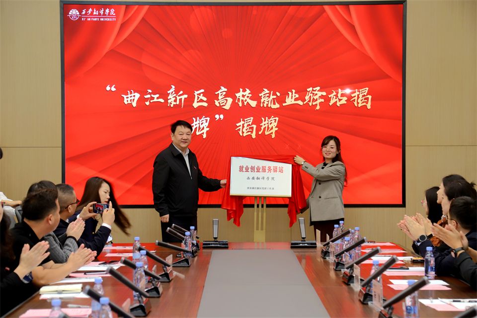 10月15日,曲江新区高校就业驿站(西安翻译学院)揭牌仪式暨校企座谈会在我校祖诒国际学术交流中心举行。西安市人才服务中心副主任李岚、曲江新区管理委员会就业促进科科长李东峰,众多企业代表及校外就业导师代表齐聚一堂。副校长王霖出席。大学生就业创业指导服务中心主任高晶晶主持。