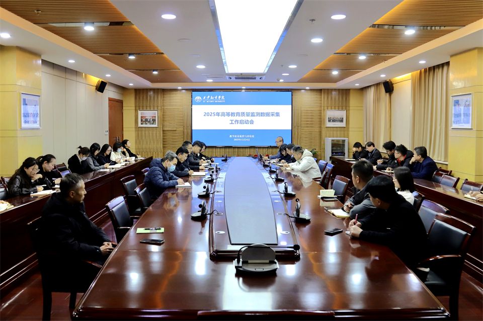 12月4日,我校召开2025年高等教育质量监测数据采集工作启动会,副校长武忠远出席会议并讲话。相关责任单位负责人和联络员到会参加。会议由教学质量监控与评估处处长柳国勇主持。