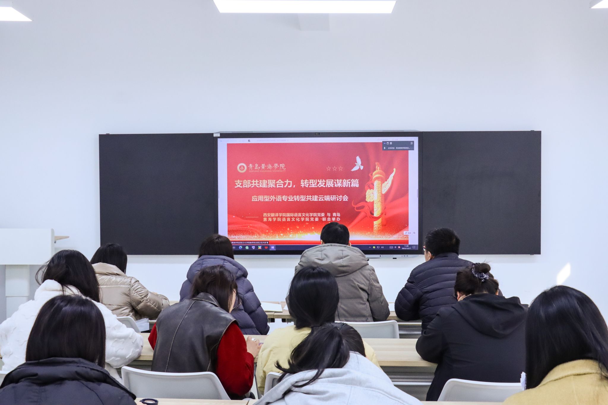 为深入探索人工智能时代背景下外语教育的变革与创新路径,共同谋划外语人才培养的转型与发展,12月17日,我校国际语言文化学院教师党支部与青岛黄海学院语言文化学院联合举办“人工智能时代外语人才培养与转型发展”线上交流研讨会。国际语言文化学院教师党支部党员代表参会,国际语言文化学院党委书记、副院长宇文永康主持会议。