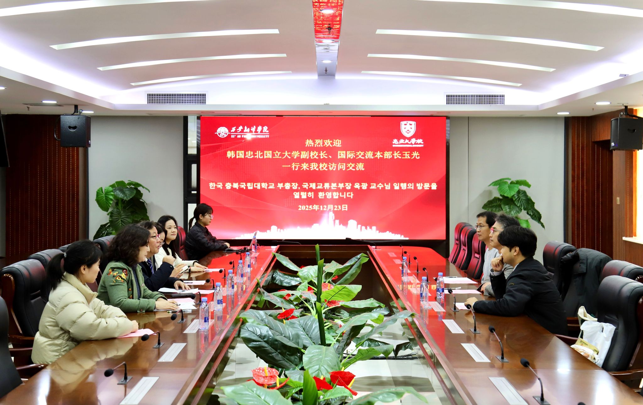 12月23日,韩国国立忠北大学副校长、国际交流本部长玉光,国际交流本部亚洲区事务主任林宏志到访西安翻译学院,开展交流访问并签署合作协议。我校副校长郭炜、国际交流与合作处处长王明明等热情接待。