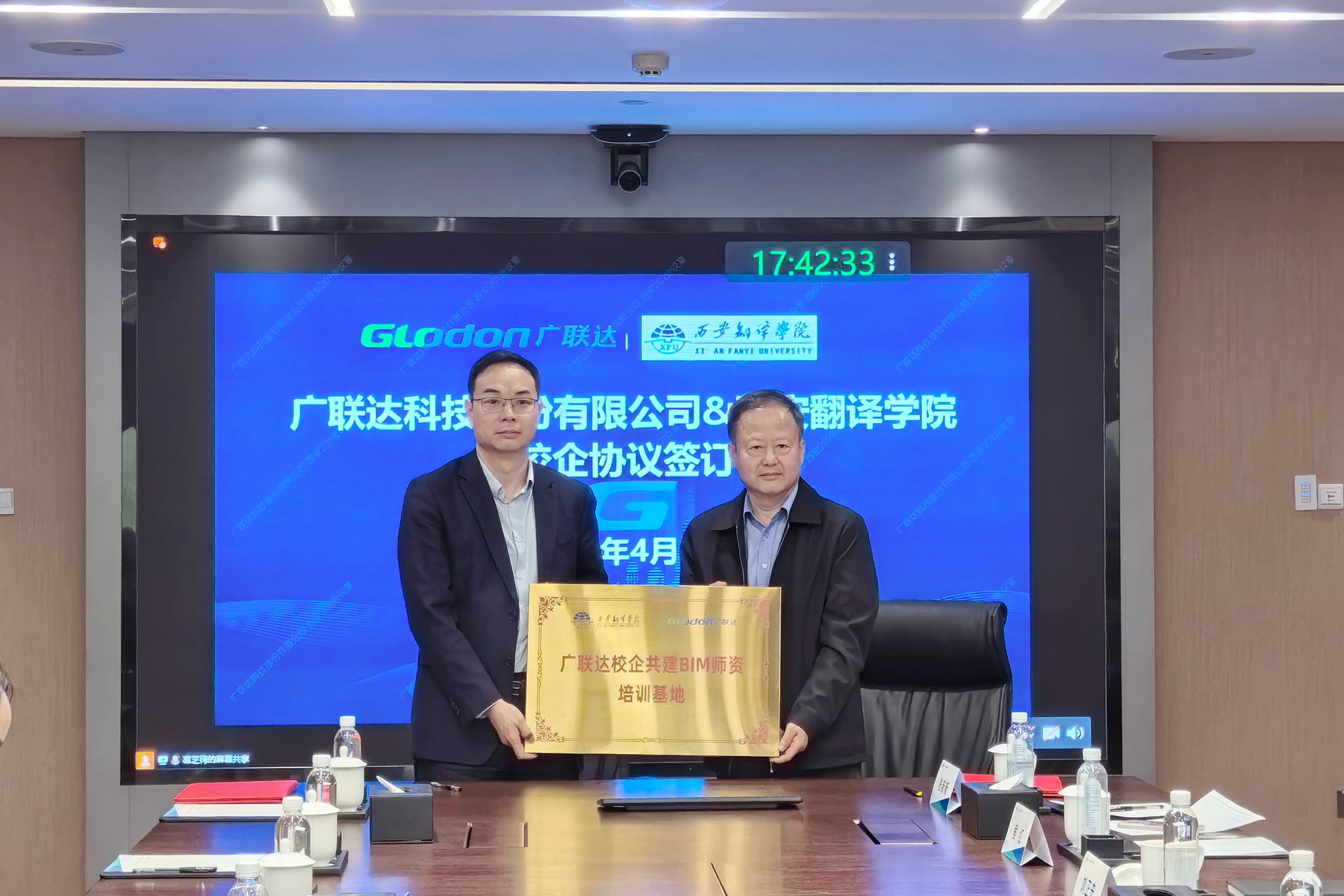 4月3日,副校长兼理工学部部长樊相宇一行9人赴广联达科技股份有限公司西安分公司(下称“广联达”)签署合作协议,举行实习实训基地与BIM师资培训基地授牌仪式。