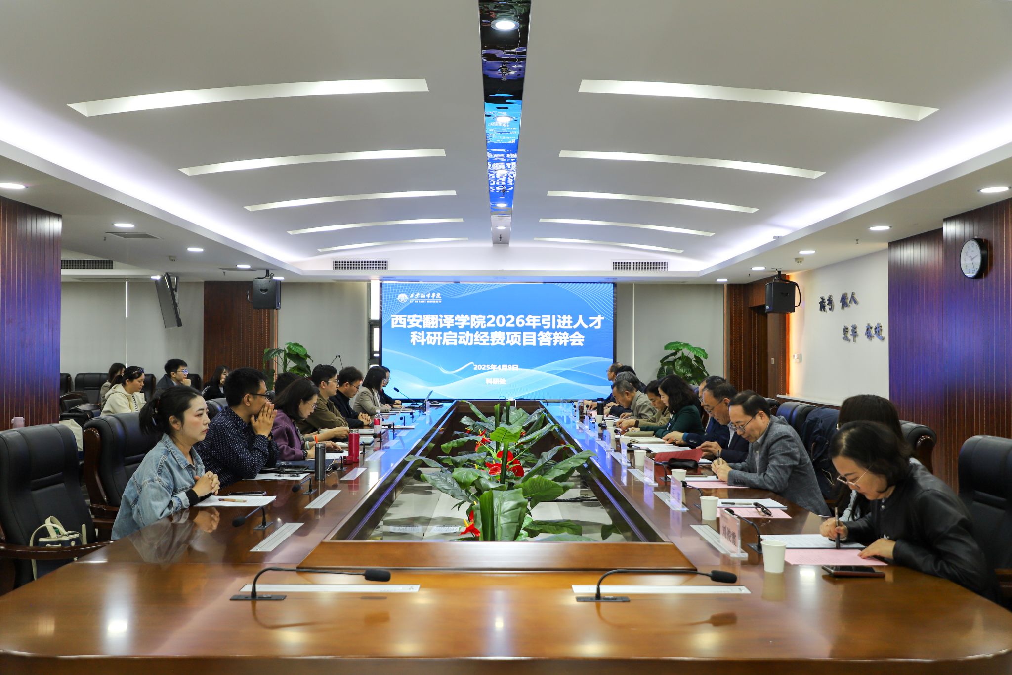 4月9日下午,西安翻译学院举行2026年度引进人才科研启动经费项目答辩评审会。学校特邀西安交通大学、西北工业大学、陕西师范大学、西北大学、西安科技大学、西安工程大学省内多所高校知名教授担任评审专家。副校长王利晓出席会议并讲话,科研处副处长张莹主持会议。
