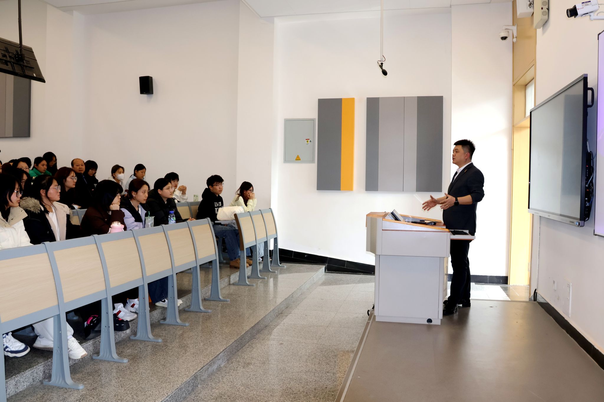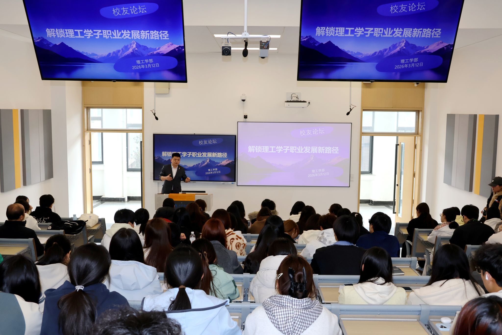 他特别强调“选择大于努力”。“人的一生中有三个选择至关重要:选择好伴侣、选择对行业、选择对圈子。”结合当下社会趋势,他鼓励同学们关注人工智能、大健康、新材料等新兴领域,提升短视频拍摄、AI应用等实操技能。“未来市场最缺的是销售人才,而销售的核心是服务意识。服务至上,才能立于不败之地。”他举例说,现在很多企业招聘时都会问:“会不会短视频拍摄?会不会剪辑?能不能当主播?”他建议同学们在校期间多钻研这些技能,“这些东西走上社会一定是很有用的。”