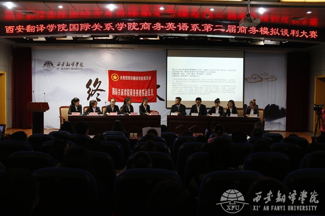 6月2日下午,由学工部、院团委主办,国关院商务英语系教研室、团总支承办的第二届商务模拟谈判大赛在多功能报告厅顺利举办。国关院商务英语系主任杨妍、教研室主任张国建,诒华学院副院长王淙、外语系副主任马青等领导应邀出席。赵丽生、董雪等五位老师担任评委。国关院英语系全体学生及诒华学院外语系部分学生到场观看。