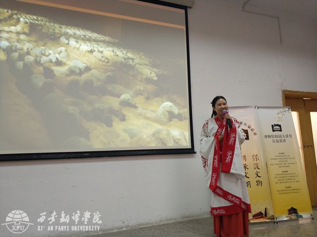 11月30日下午,由中共陕西省高教工委、陕西省精神文明建设指导委员会办公室、陕西省文物局、陕西广电网络传媒(集团)股份有限公司、陕西日报传媒集团主办,西安翻译学院商学院承办,旅游管理系协办的“博物馆校园大讲堂公益巡讲走进西安翻译学院”活动在商学院9号楼923T教室举行。博物馆大讲堂公益巡讲系列办公室主任李明、西安翻译学院商学院院长王柏林,商学院行政副院长宇文永康、旅游管理主任李晓、旅游管理系各位教师和我校200多名学生共同参加了此次活动。
