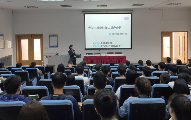 为了贯彻落实学校开展的“企业家进校园”活动,探索校企协同、合作育人的应用型人才培养模式,4月24日下午,我校商学院邀请了校企合作单位高新希尔顿酒店人力资源总监曹嫦莉女士,以“大学生就业胜任力提升分析——以酒店管理为例”为主题为商学院广大师生进行了学术讲座。商学院管理一系副主任董晓英、旅游管理专业负责人周伟伟老师及部分学生到场聆听了讲座。商学院副院长姚江红与曹嫦莉女士进行了亲切的座谈。