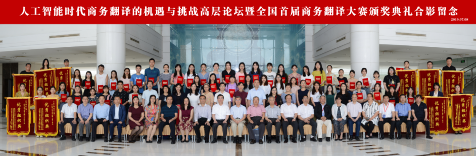 为了更好地满足新时代对高水平商务翻译人才的需求,进一步提高我国商务翻译人才培养质量,全国翻译专业学位研究生教育指导委员会、中国国际贸易学会国际商务英语研究委员会与上海对外经贸大学共同举办首届“全国商务翻译大赛”。比赛于2019年5月24日完成了在线初赛,经专家组对来自32个省份的数百家全国高校审议,西安翻译学院获得 “优秀组织奖”。 大赛颁奖典礼于7月8日上午在上海对外经贸大学(松江校区)信息楼526举行。本次大赛组委会诚挚邀请了我校英文学院教师、《商务英语翻译》课程团队负责人魏征老师出席了本次颁奖典礼,并上台领奖。