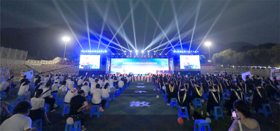 2020年7月4日傍晚,西安翻译学院举办了一场特殊的毕业典礼。受新冠肺炎疫情的影响,学校首次借助互联网技术,采用线下与线上同步进行,通过平台直播的形式,举行2020届毕业典礼暨学位授予仪式。全国各地的万名毕业生“云端相聚”,200名毕业生代表参加现场典礼。名誉校长孙天义,理事长丁晶,学校各级领导,学位评定委员会委员,社会各界嘉宾代表和校友、家长代表们共同见证了这一难忘时刻。这场特殊的“云毕业”典礼也为毕业生们的大学生活画上了一个圆满的句号。