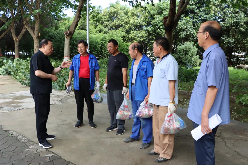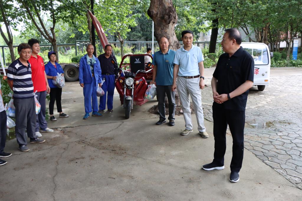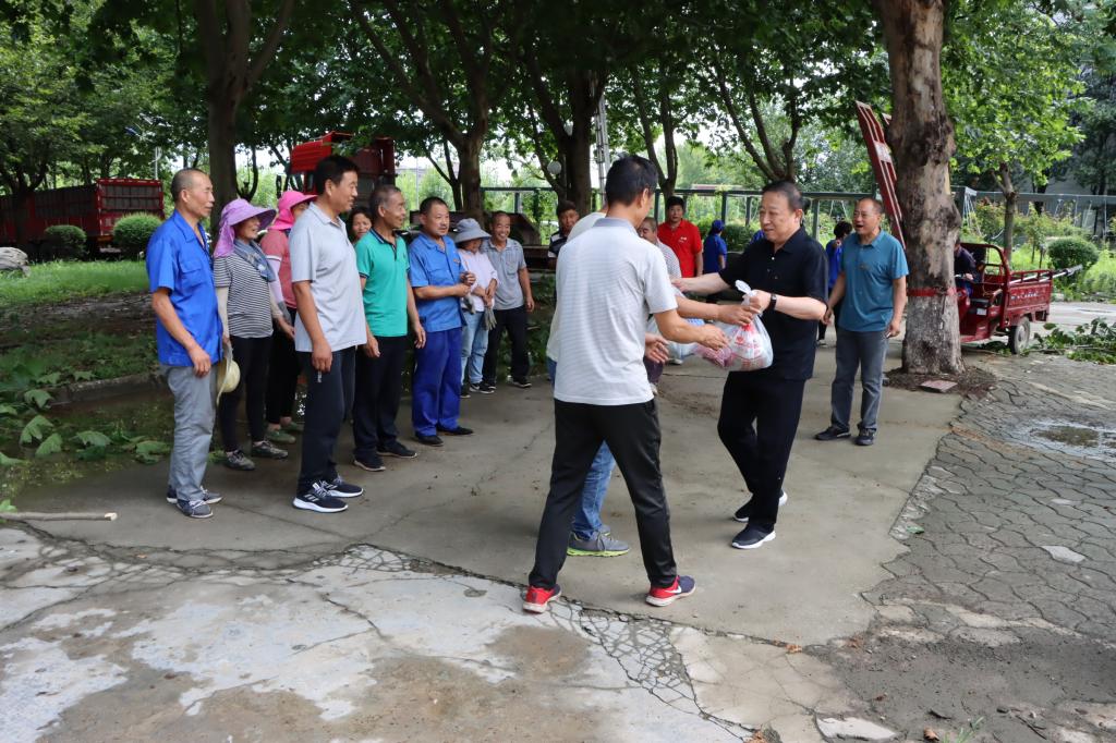 韩越为暑假奋战在一线的后勤动力处职工发放防暑降温慰问品