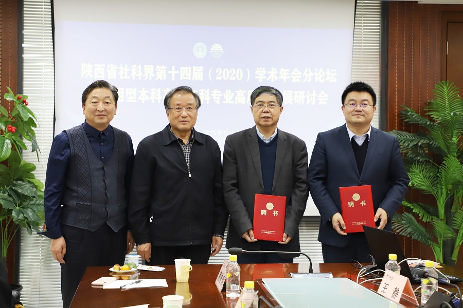 我校执行董事崔智林、副校长齐玉水向西部数字经济研究院院长、陕西省工商管理类教学工作委员会委员张鸿,西北大学经济管理学院院长、陕西省经济学类教学工作委员会秘书长吴振磊授兼职教授聘书