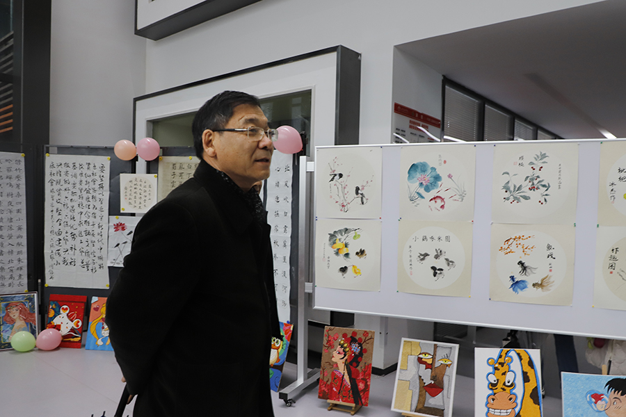 校长韩江水参观教育学院“临摹生活 笔舞青春”第四届美术手工作品展
