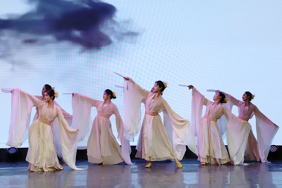 汇演在激情洋溢的舞蹈《龙拳》中拉开帷幕。古筝合奏《茉莉花》由乐海乐团带来,表演者仪表端庄、自信大方,在抒情婉转的曲调与明快活泼的音符碰撞中,将古典静雅的中国风展现得淋漓尽致。社管办与桃李通讯文学社联合诵读《抗疫情浓,佳节与共》,朗诵者声情并茂地讲述了中国人民在疫情期间无私奉献、奋斗不息的民族之魂,彰显出举国上下团结一致、迎难而上的爱国情怀。部分社团代表合唱歌曲《夜空中最亮的星》,他们将静谧灵动的乐曲与柔美曼妙的舞姿巧妙结合,传递出我校学子对梦想的执着追求与对新年的翘首期盼,欢声笑语中赢得现场观众阵阵掌声,将汇演推向高潮。
