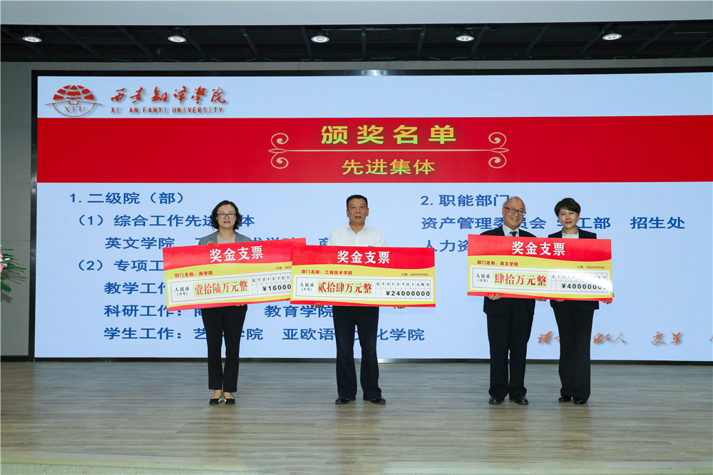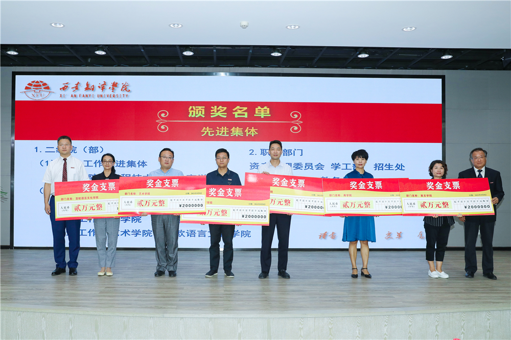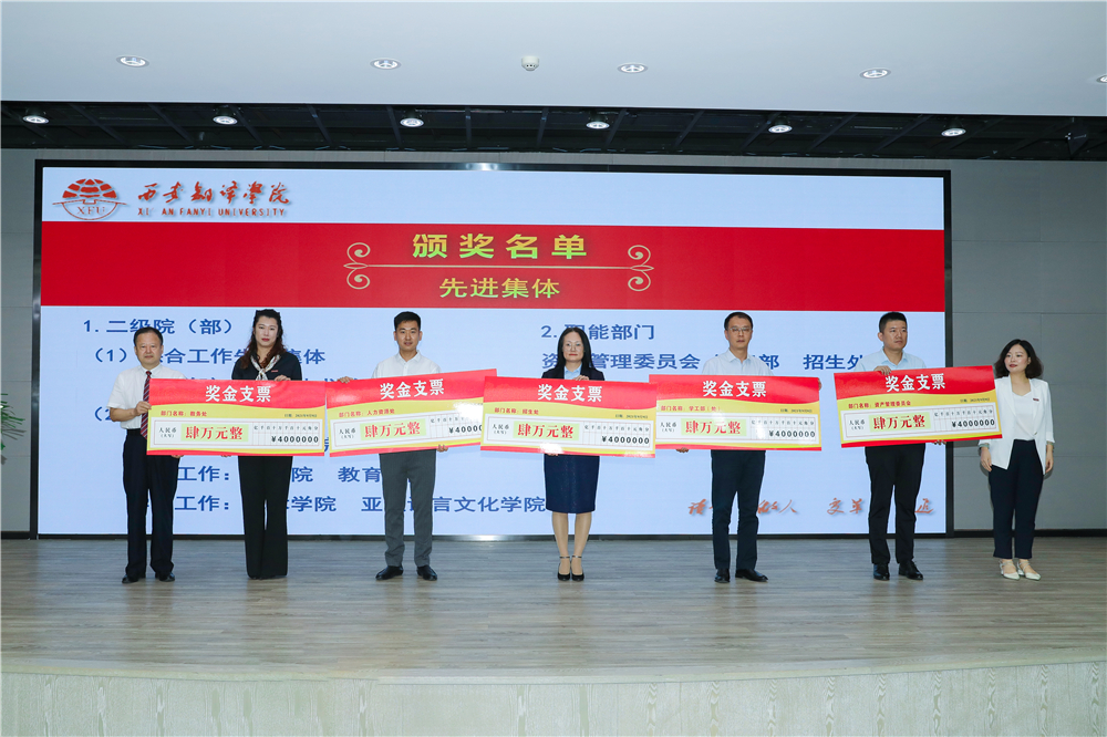 副校长兼教务长齐玉水宣读了《关于表彰2020-2021学年先进集体和先进个人的决定》,对一年来在我校教育教学、行政、教辅、后勤保障等工作中涌现出来的优秀教师、先进工作者、“十佳”辅导员、师德标兵、年度考核先进集体等进行了表彰。校领导为受到表彰的教师代表、获奖单位颁发了证书和奖牌。