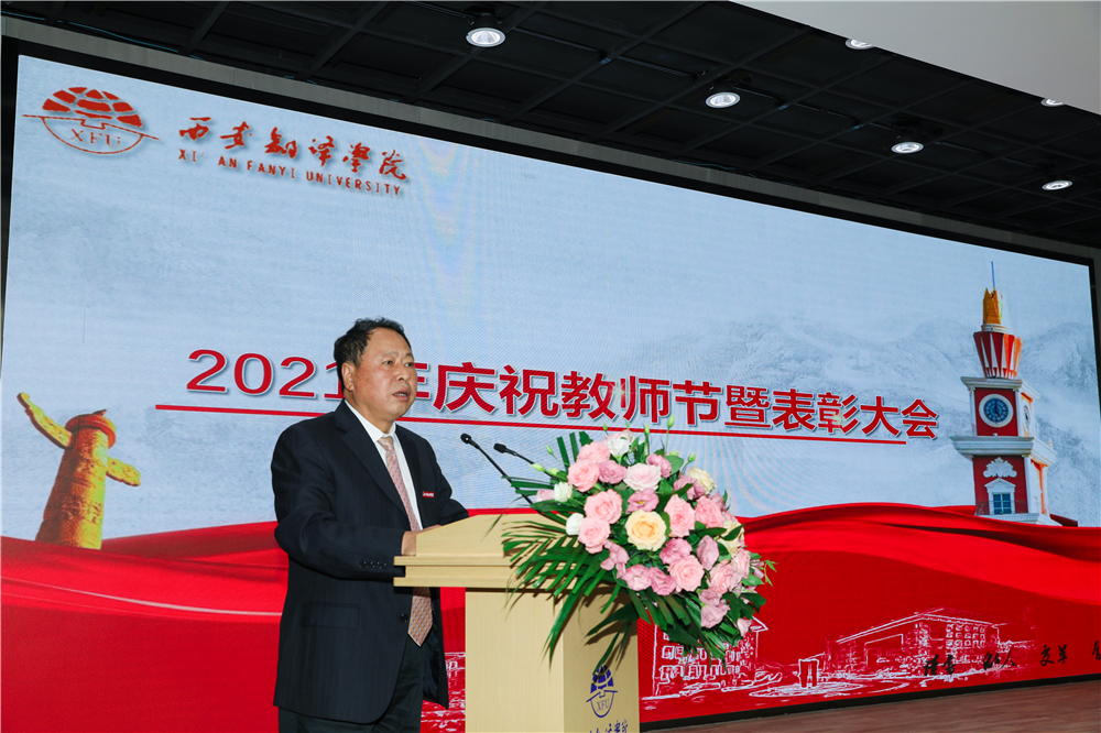 随后,崔智林作题为《牢记教书初心,担当育人使命勠力同心共筑“西译梦”》的讲话。他向全体老师及此次受表彰的先进集体和优秀个人致以节日的问候和祝贺,总结了我校近年来在教师队伍建设中取得的成绩,同时对广大教师提出殷切期望。