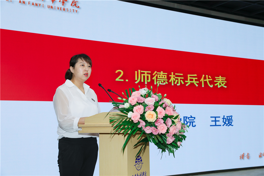 终南学者、英文学院教授王文作为先进集体代表在发言中表示,将继续与广大教师团结一心,一如既往,勇担责任,开拓进取,在探索奋进中走出创新之路,为学校“双一流”建设做出更大贡献。