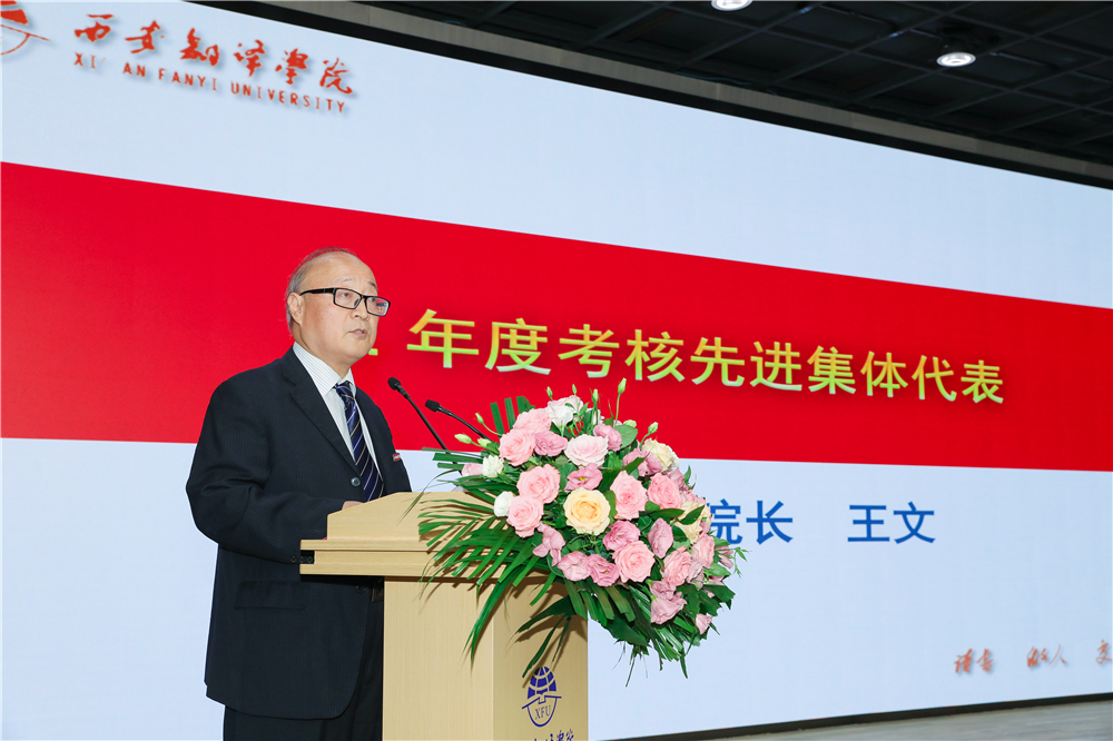 年度考核综合工作先进集体负责人、终南学者、英文学院院长王文发言