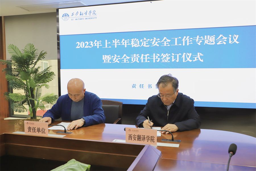 会上,分管稳定安全、消防安全的校领导与责任单位代表分别签订了《西安翻译学院2023年度安全稳定工作目标责任书》《西安翻译学院2023年度消防安全工作目标责任书》和《西安翻译学院2023年度重点部位和重点人员管理责任书》。