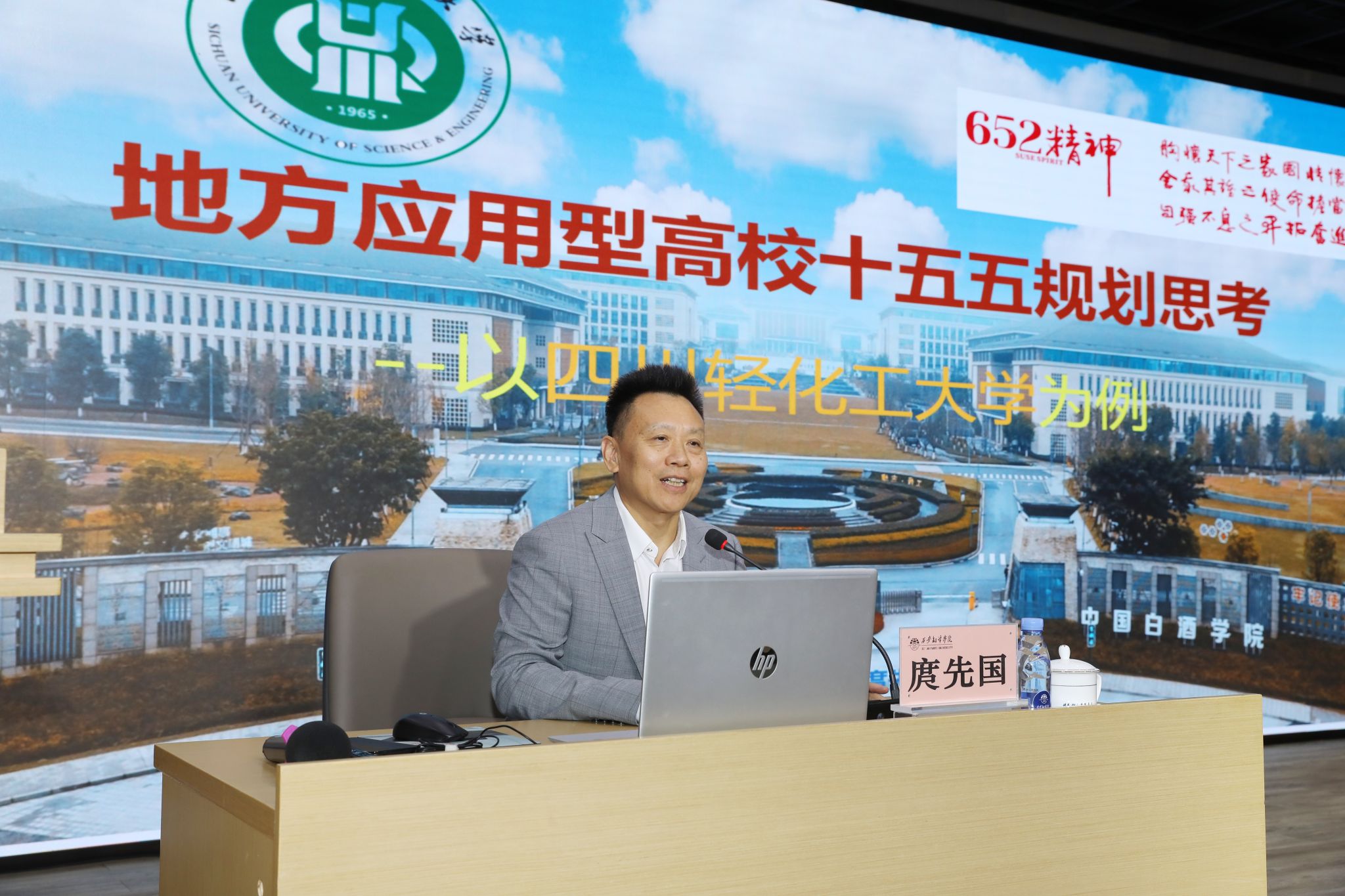 庹先国结合四川轻化工大学“十三五”、“十四五”规划制定及实施,讲解了高校发展规划制定的方式方法及实践路径。他强调,高校如何发展,要考虑的首先是“扬优势、强特色、活下去”,把已有学科专业优势转化为服务地方产业的竞争力,打破传统路径依赖,闯出适合自身发展的特色化路径。他以“转变观念、五个融合、实干为要”为关键词,结合四川轻化工大学白酒产业学院的成立和取得突破性发展为例,阐述了应用型高校的学科建设要解放思想,以产业发展需求为导向,全校上下大胆破局,培养学生成长为炙手可热的市场抢聘人才,凭借比较优势走向全国乃至世界。其中,他以外语专业支撑产业发展为导向的思路,实现了理工学科与外语学科“1+1>2”的优秀结果,走出了一条国际化人才培育和输出的成功之路,对我校的转型发展有着重要启迪。他强调,高校的高质量发展路径就是从“被动应对”到“主动谋划”,从“粗放扩张”到“精益治理”的进化路径。随后他讲解了制定战略规划的“分析—谋划—行动—评估—再提升”的循环体系路径,阐述了战略规划制定的注意事项,使其实现“改革—稳定—发展—质量—特色—水平”的闭环逻辑。