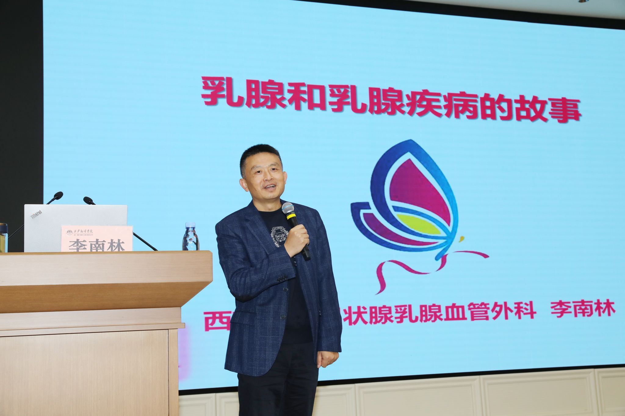 讲座中,李南林强调,男性和女性都可能罹患乳腺疾病。他从认识乳腺、乳房保健、乳房检查、常见问题四个方面,进行了乳腺健康知识的讲解。他指出,确保乳腺健康,应保持生活规律、情绪调控、适当锻炼、控制体重、均衡膳食的生活方式。随后讲解了不同阶段人群乳房保健的方式方法,实用且科学。他以图文结合的形式,展示了乳房自查的方式方法,以及他查如超声、钼靶、核磁共振等项目检查各自的特点;阐述了乳房疼痛、溢液等现象背后的原因,并给出何时应就医检查的建议。他结合全球及中国乳腺癌的发病规律及情况,提倡应做好日常筛查,做到“早发现,早治疗,早康复”。他多次强调,日常生活中要保持三不原则:不要太在意,不要不在意,不要不好意思。