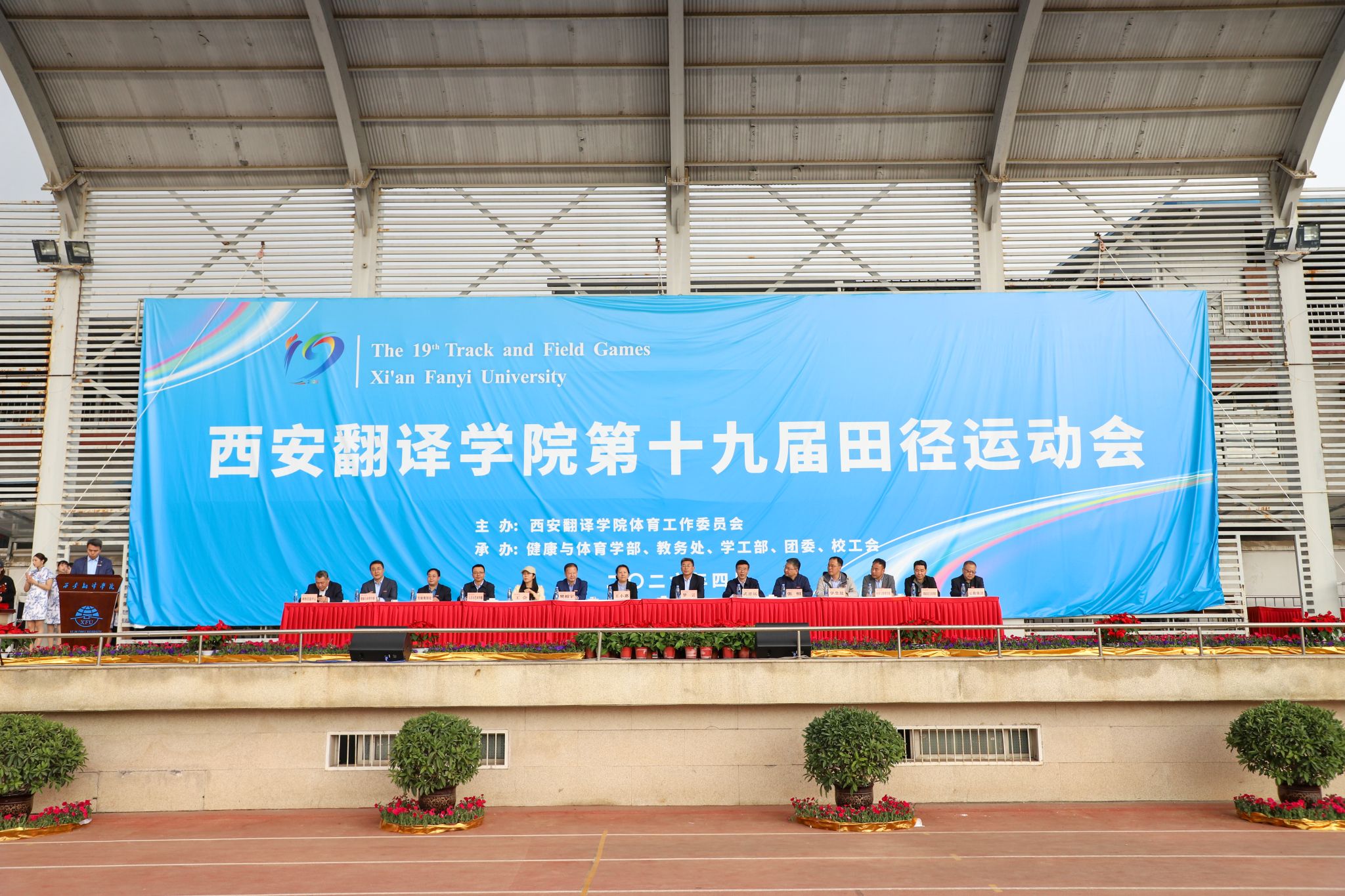 4月24日下午,经过为期两天紧张激烈的比赛,西安翻译学院第十九届田径运动会圆满闭幕。校长罗云,副校长武忠远,党委副书记王小惠,党委副书记、副校长张恒,副校长樊相宇,工会主席赵驿梅及各学部(院)、职能处室负责人出席。各二级学部(院)师生代表、运动员代表参加闭幕式。教务处副处长孙晓辉主持闭幕式。
