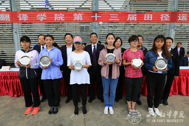 经过两天的激烈比拼,体育部部长许崇高宣读运动会比赛获奖名单。其中,英文学院以156分和262.3分的成绩位于男子团体和男女团体双项排名之首,教育学院以183分获得女子团体第一名,工程技术学院分会获得教职工团体第一名。党委副书记、工会主席王小惠宣布,英文学院、亚欧语言文化学院、教育学院、学工部、宣传部获得最佳组织奖;商学院、文学院、艺术学院、团委获得精神文明奖;高级翻译学院、健康学院、工程技术学院获得道德风尚奖,后勤集团获得特别贡献奖。我校领导为获奖运动员及团体颁奖。运动会期间,女子100米、200米、100米栏打破校最高记录。男子200米、4*100、3000米、跳高,女子三级跳远、200米、400米、800米、跳高打破了校运动会记录。