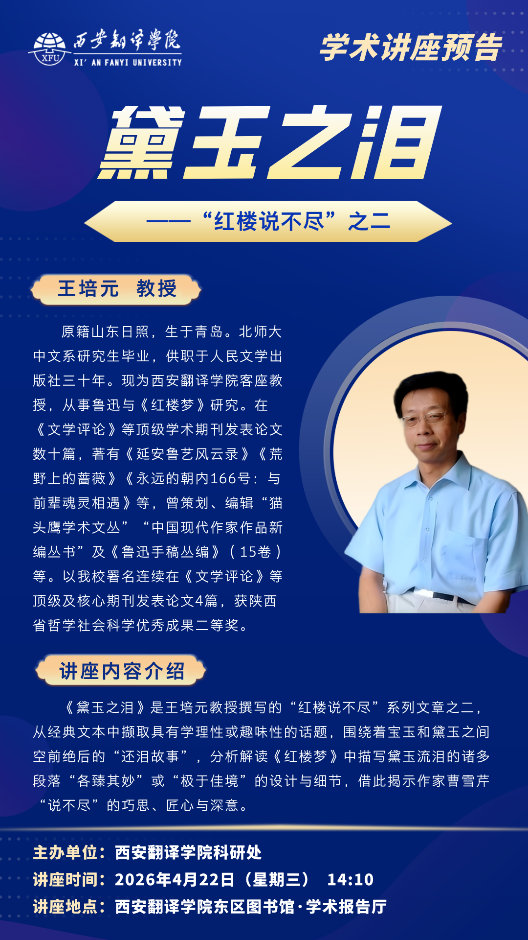 【学术讲座预告】黛玉之泪——“红楼说不尽”之二