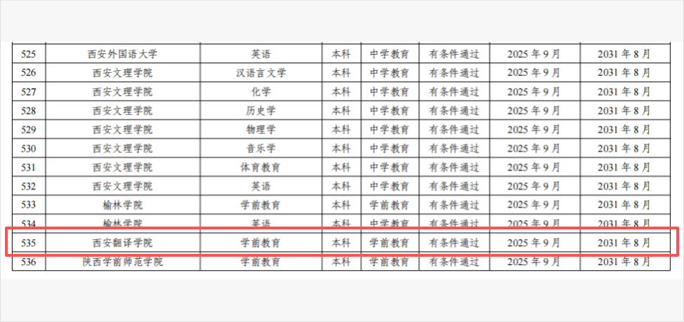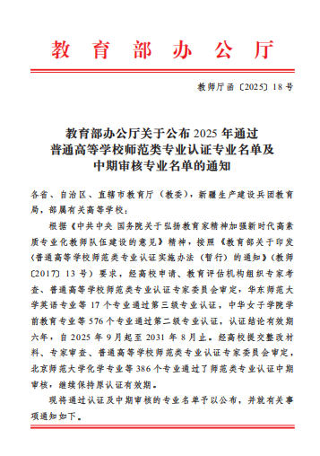 近日,教育部办公厅印发《关于公布2025年通过普通高等学校师范类专业认证专业名单及中期审核专业名单的通知》(教师厅函〔2025〕18号),西安翻译学院学前教育专业通过师范类专业第二级专业认证,成为全省首家通过该类认证的民办高校。
