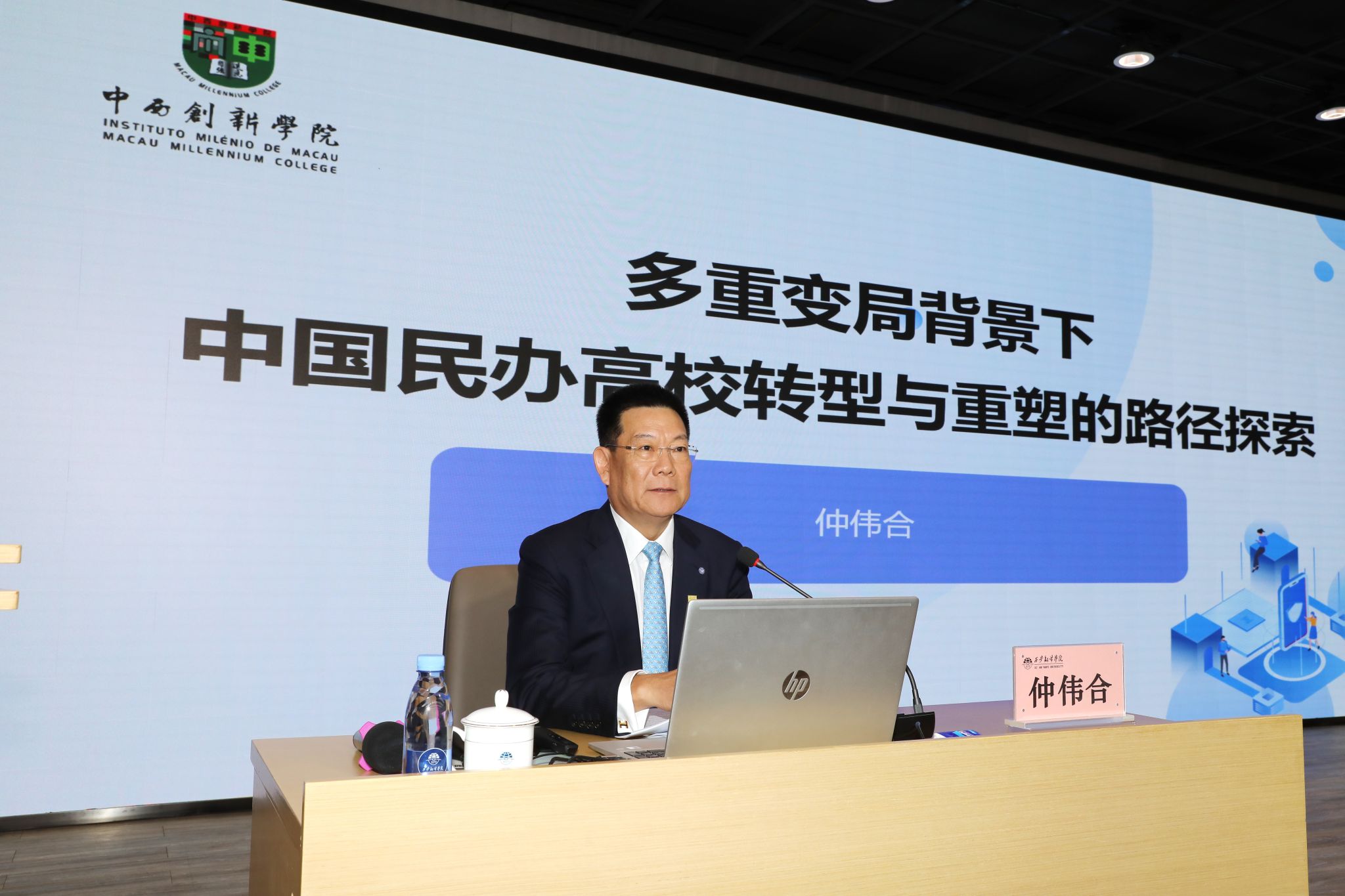 11月17日,西安翻译学院启动第四期教育思想观念大讨论。澳门中西创新学院校长仲伟合受邀作《多重变局背景下中国民办高校转型与重塑的路径探索》报告。理事长丁晶,校长姚书志,全体副校级领导、各二级学院和职能处室科级以上干部听取报告并开展分组讨论。副校长武忠远主持。