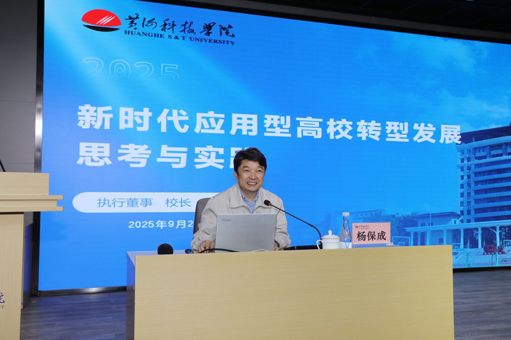 黄河科技学院执行董事、校长杨保成应邀作题为《应用型高校转型发展思考与实践》讲座