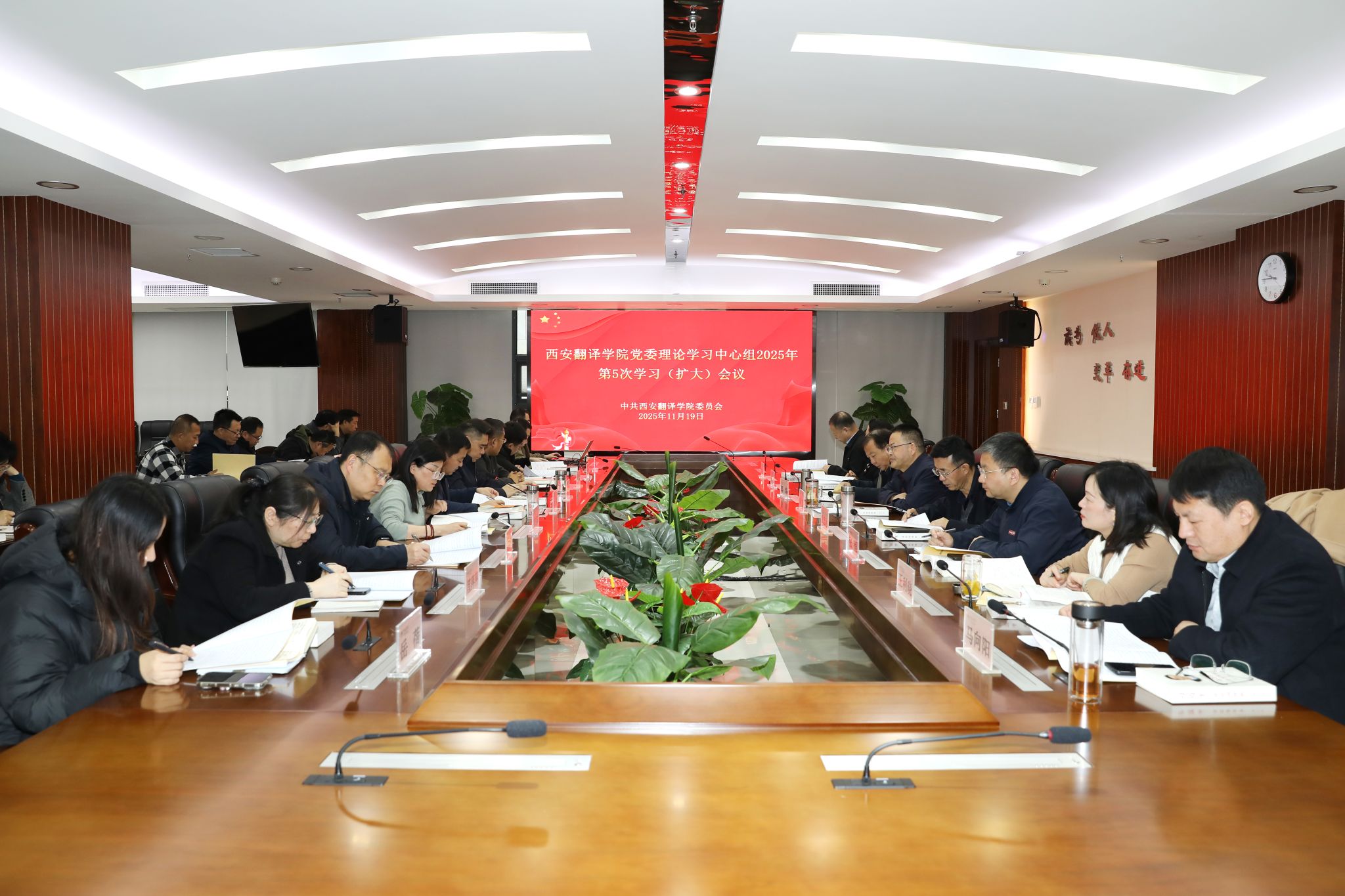11月19日上午,西安翻译学院党委理论学习中心组召开学习会,会议主题为深入学习贯彻党的二十届四中全会精神。校党委理论学习中心组全体成员、各二级党组织负责人参会,会议由党委委员、宣传部部长邱杰主持。