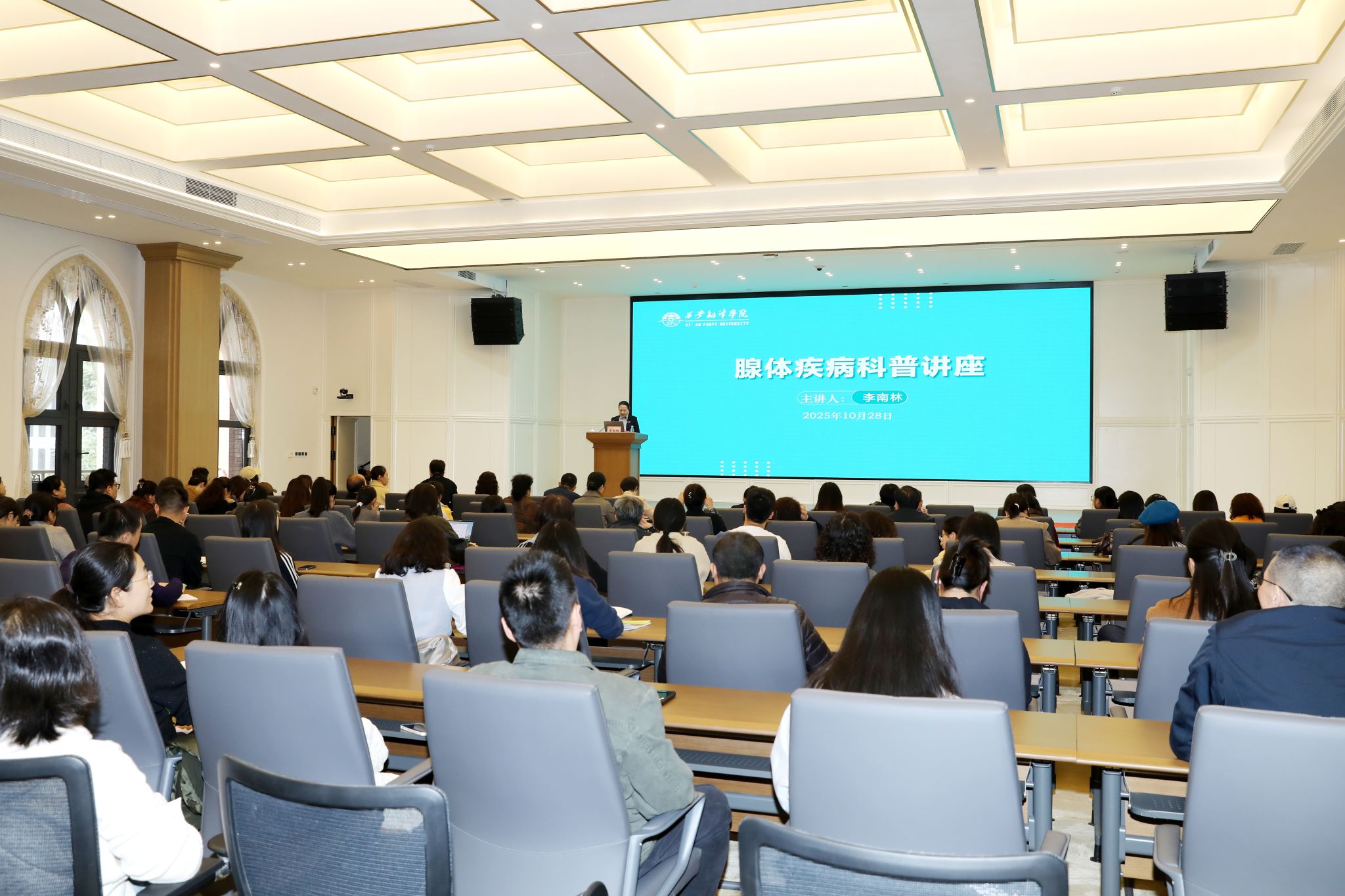 10月28日,腺体疾病科普讲座在我校祖诒国际学术交流中心举办,特邀陕西省健康科普专家、西京医院李南林副教授主讲。理事长丁晶,部分二级学院领导、教职工代表及护理与康复学院师生代表参加。党委副书记、工会主席王小惠主持。讲座中,李南林强调,男性和女性都可能罹患乳腺疾病。他从认识乳腺、乳房保健、乳房检查、常见问题四...