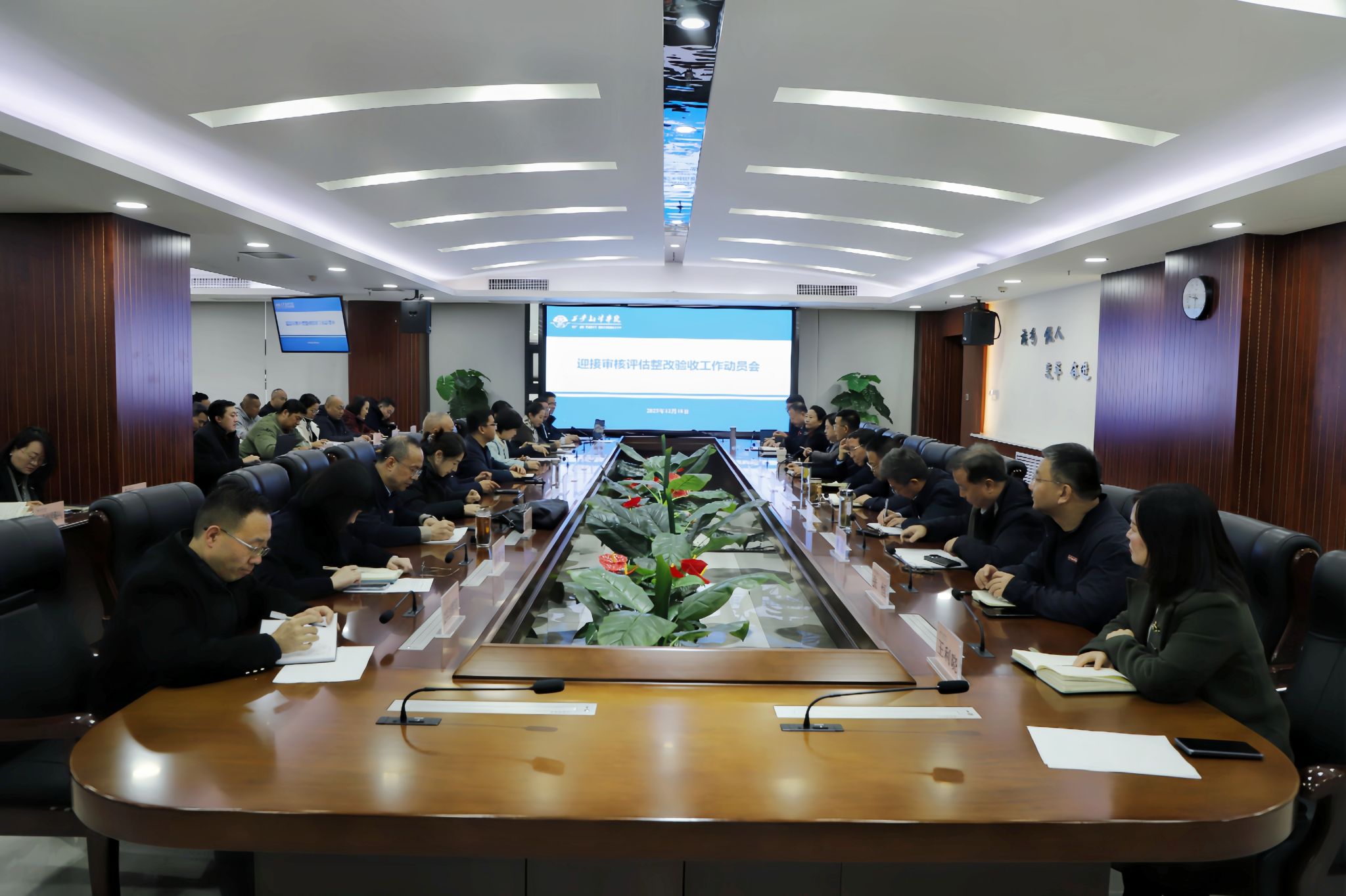 为全面做好审核评估整改验收迎评工作,进一步统一思想、凝聚共识、落实责任,12月18日上午,西安翻译学院召开迎接审核评估整改验收工作动员大会。全体校领导,各职能处室、各二级学院负责人参会。会议由副校长武忠远主持。